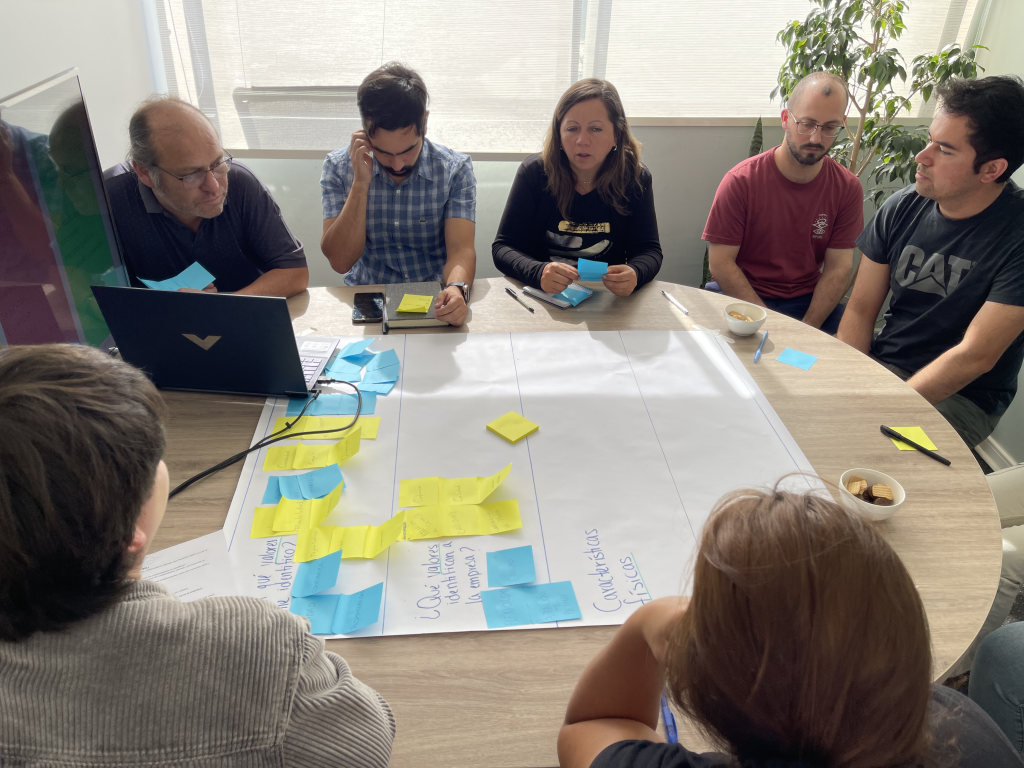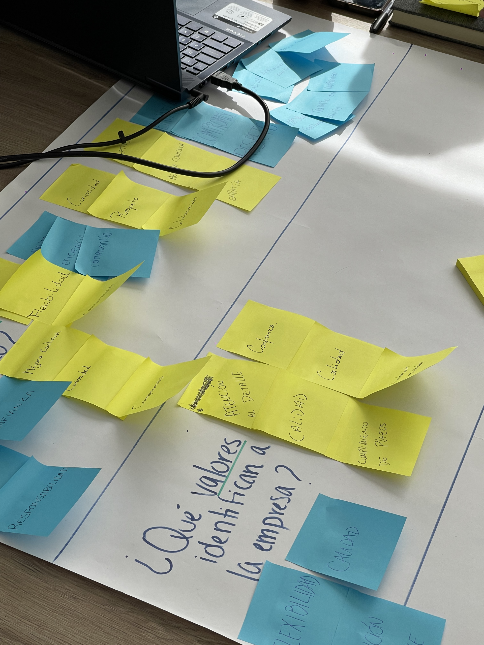 Junto al diseñador Moisés Olguín, realizamos un focus group interno donde invitamos a nuestro equipo a reflexionar sobre la cultura organizacional de EMOJ. Entre dinámicas participativas, post-its y conversación sincera, surgieron los valores que nos representan: